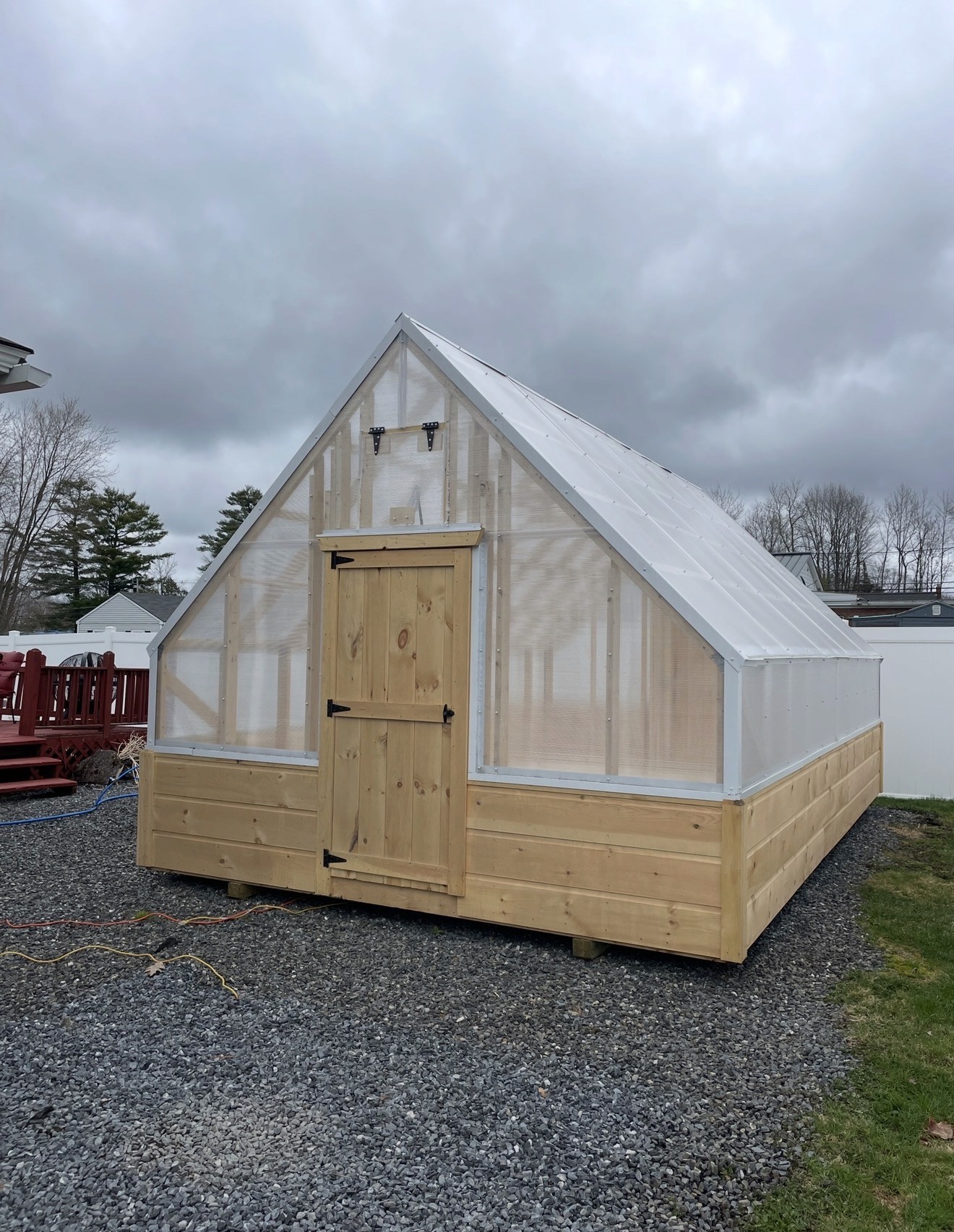 This beautifully designed greenhouse will transform your backyard into a gardener's paradise. With its sturdy construction, ample natural light, clear double walled polycarbonate, and automatic ventilation, it provides the perfect environment for growing. Customize it to fit your space and gardening needs, and enjoy fresh produce and vibrant flowers in any season.