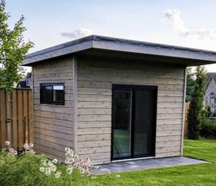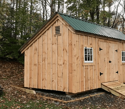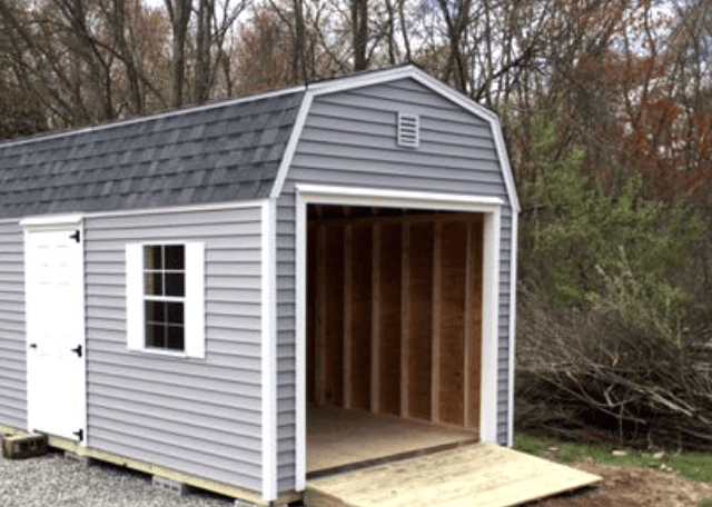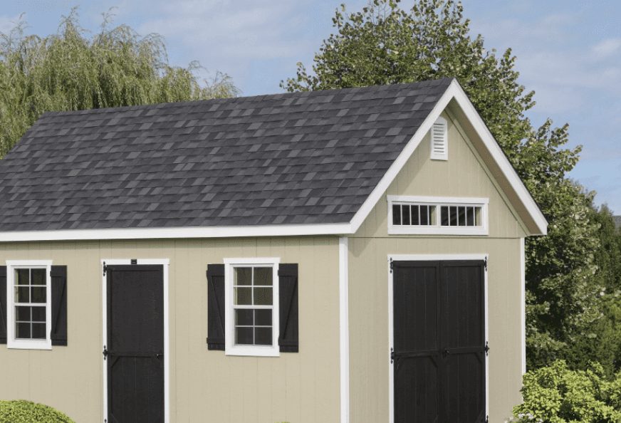 A gable roofline features two sloped sides that meet at a central ridge, forming a triangular shape at each end of the building. This classic design allows for effective water and snow runoff, offers ample interior space, and provides a timeless architectural look.