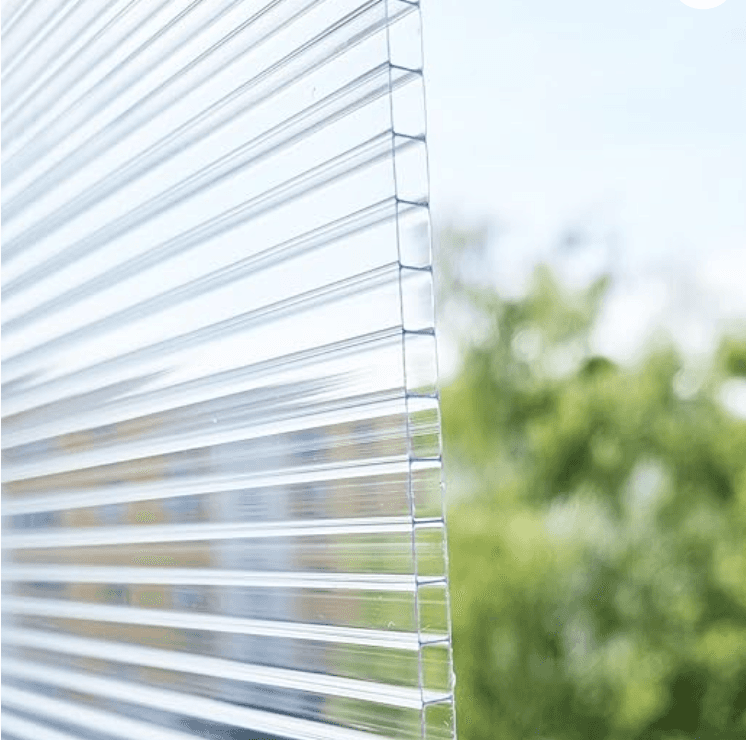 Double-walled polycarbonate is perfect for greenhouses as it lets in light while keeping out UV rays. Its dual-layer design provides excellent insulation and durability, helping maintain stable temperatures and protect plants from harsh weather.